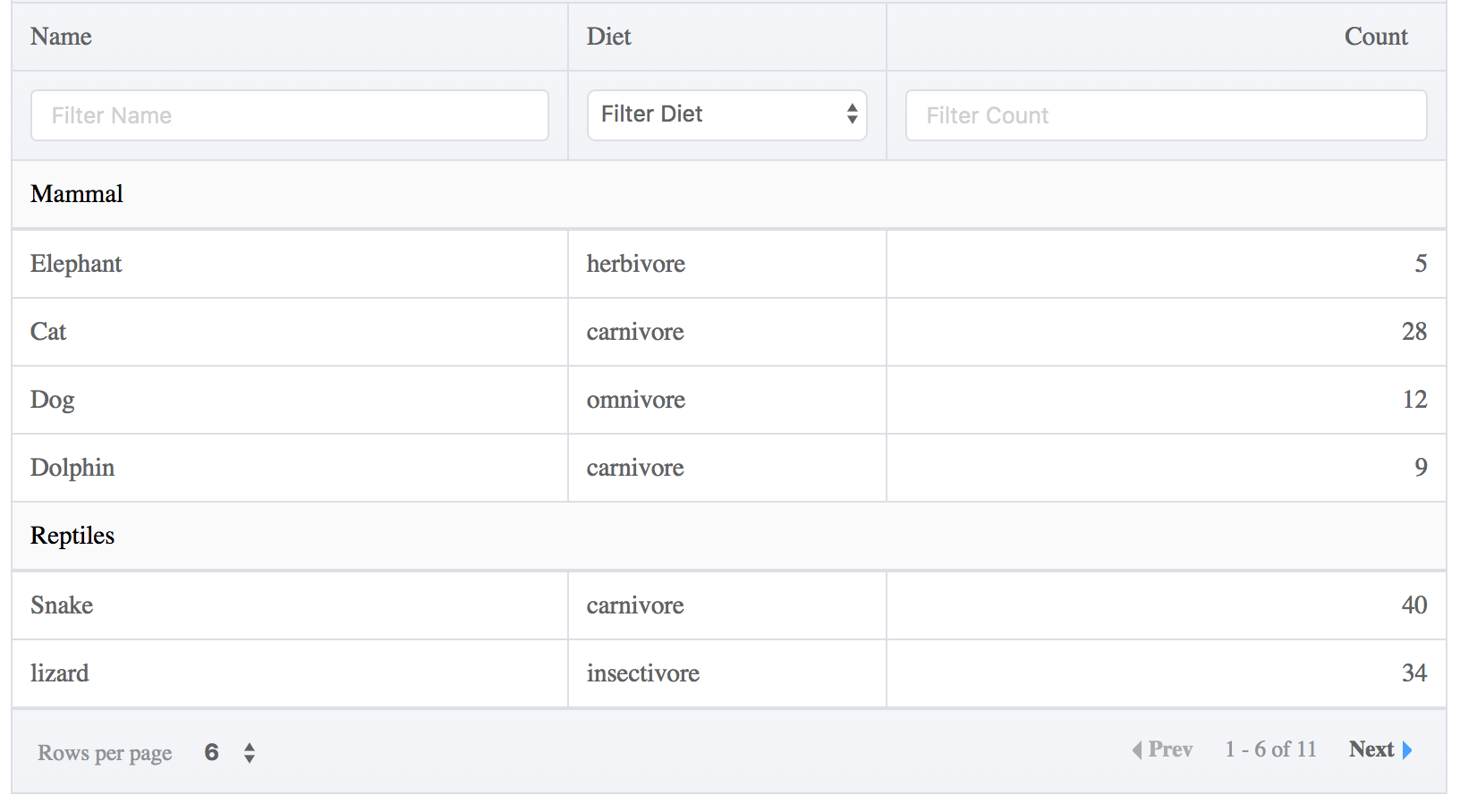 소팅,필터,페이징,구룹핑 등 다양한 기능를 구현할수 있어서 자주사용된다.GitHub 의 인기는 2k star 정도